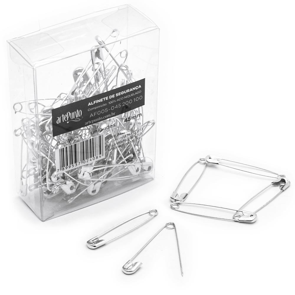 Fabricado em aço niquelado, apresenta acabamento uniforme e estrutura que proporciona fechamento seguro, contribuindo para um manuseio mais prático durante o uso. É uma opção versátil para costura criativa, montagem de lembrancinhas, identificação de peças e pequenos ajustes em tecidos.