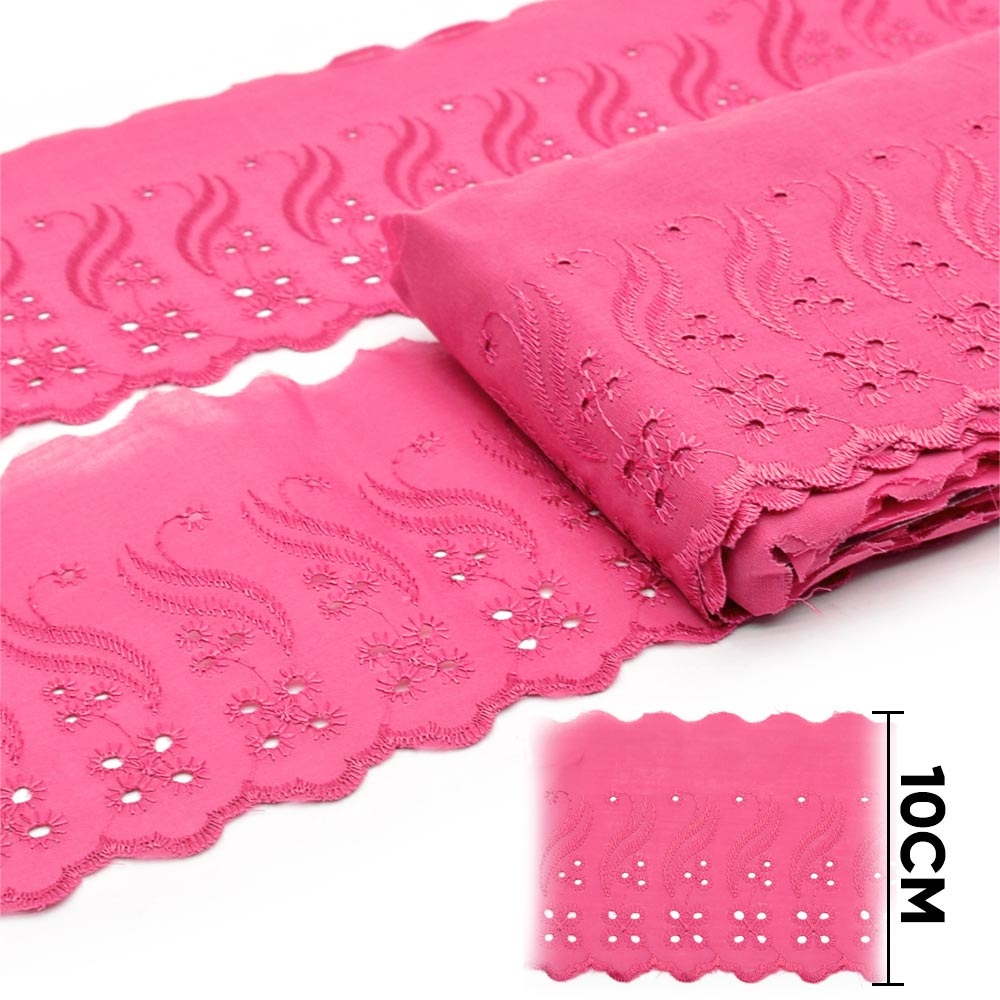 O Bordado Inglês 10,0cm BP088 Rosa Chiclete é ideal para quem busca um acabamento alegre e delicado nas peças de costura e artesanato. O desenho bordado com detalhes vazados e barra ondulada cria um efeito decorativo encantador, valorizando barras, aplicações e detalhes em diversos trabalhos.