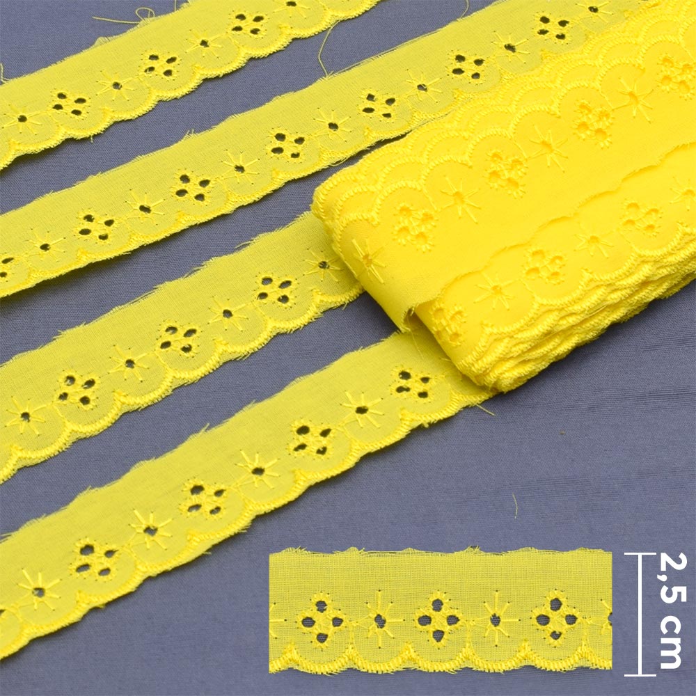 Bordado Inglês 2,5cm BP075 Amarelo Ouro - 13,7 Metros | artePunto