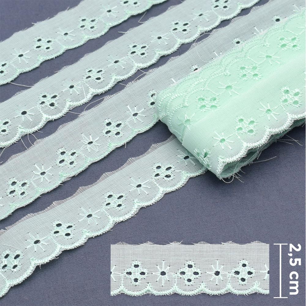 Bordado Inglês 2,5cm BP075 Verde - 13,7 Metros | artePunto