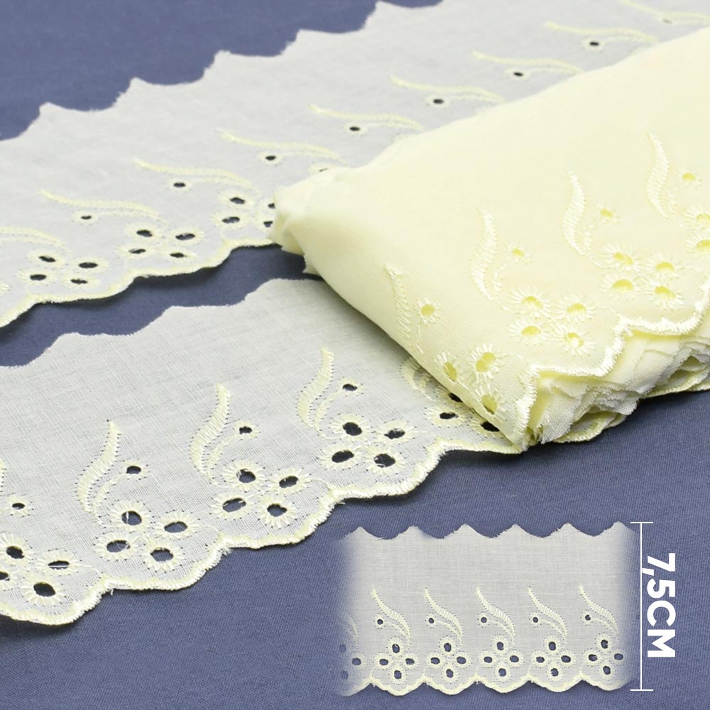Bordado Inglês 7,5cm BP077 Amarelo - 13,7 Metros | artePunto