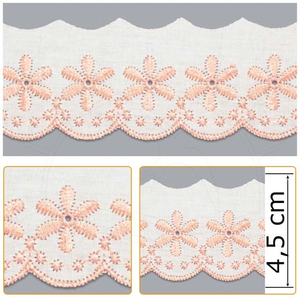 Bordado Inglês BP053 043 Branco/Salmão - 4,5 cm