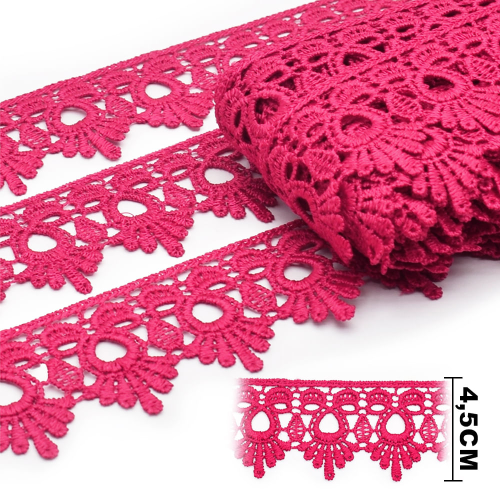 O Guipir GP068 Pink destaca-se pela cor vibrante e pelo desenho elaborado, perfeito para composições que buscam personalidade e delicadeza. Com 4,5 cm de largura, essa renda valoriza desde peças de moda feminina até detalhes em acessórios, customizações e decoração.