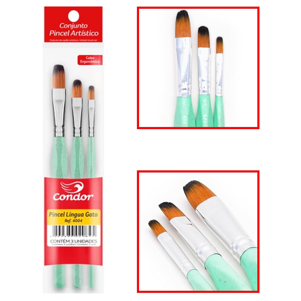 Kit de Pincéis Ergonômicos Língua de Gato Condor 4004 - 3 Unidades