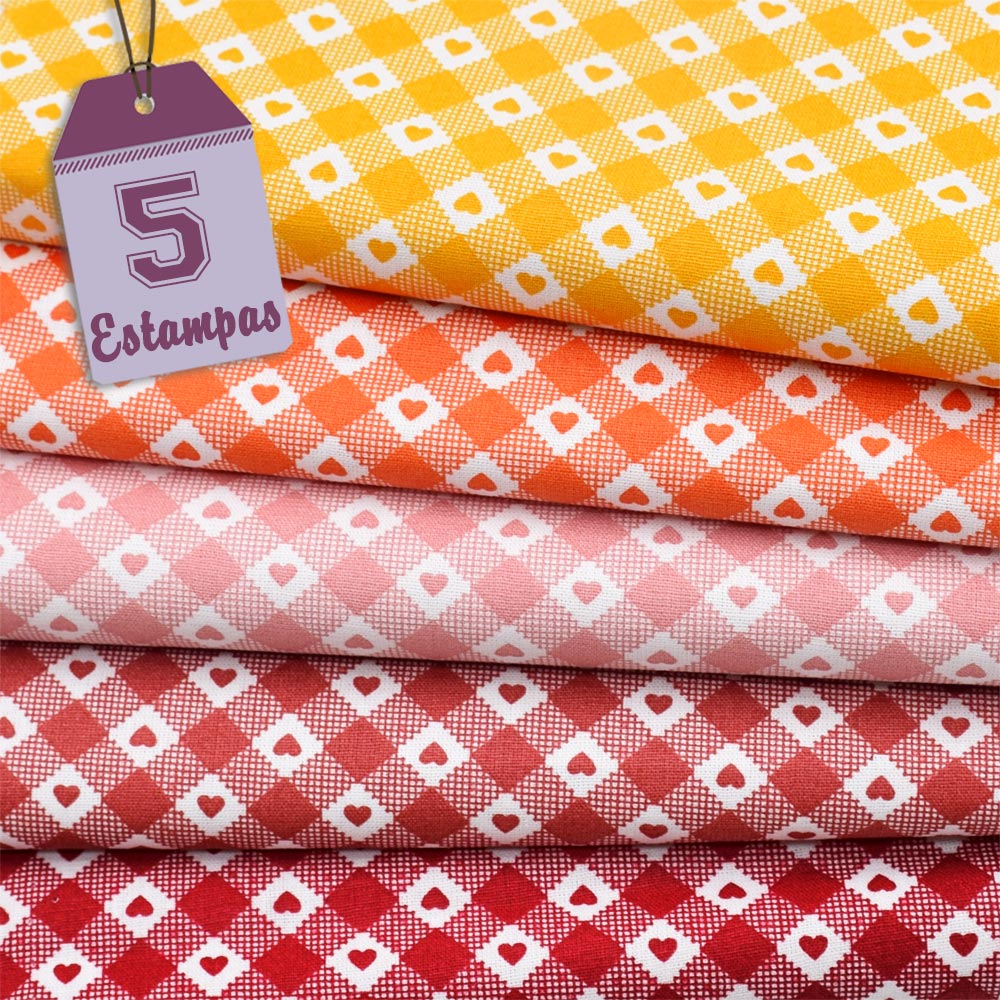 Kit de Tecido Coração Country Vermelho (50X150) 5 Estampas