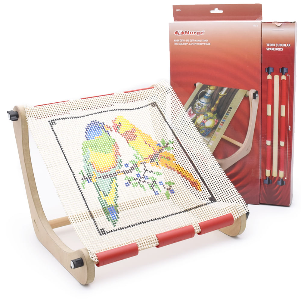 O suporte para bordado tabletop rolo ajustável Nurge é uma solução prática e confortável para quem busca liberdade ao bordar. Ideal para ponto cruz, tapeçaria, bordado livre ou patchwork, ele pode ser usado tanto sobre a mesa quanto apoiado no colo, oferecendo mais comodidade em diferentes posições de trabalho.