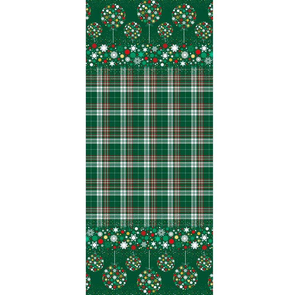 Tecido de Sarja Hidrorrepelente Natal : Põe na Mesa Barrado Bolas com Xadrez (0,50x1,75)