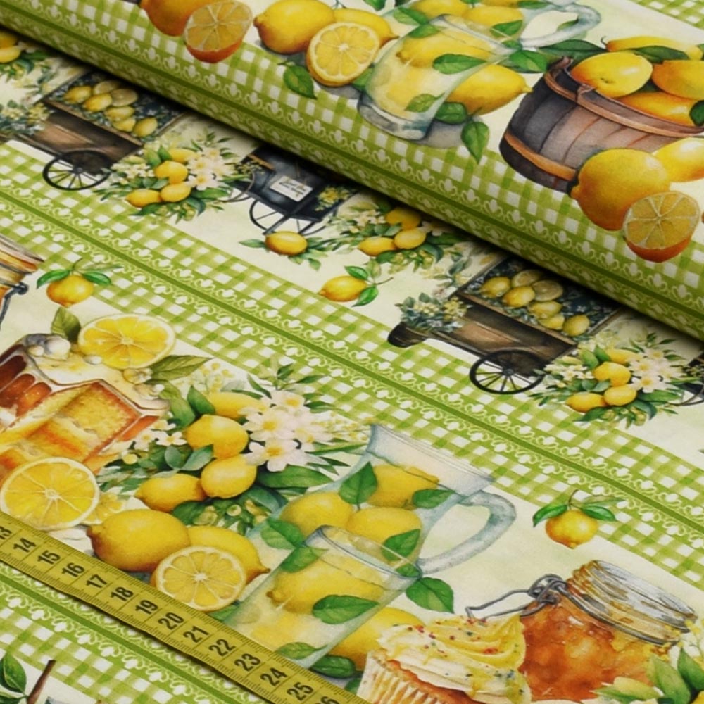 Tecido Estampado para Patchwork - Pano Para Mangga : Barrado de Limão (0,50x1,50)