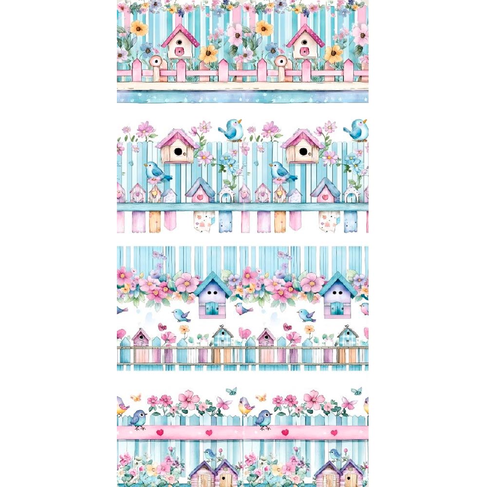 Tecido Tricoline Barrado Casa de Passarinhos Lilac (0,50x1,50)