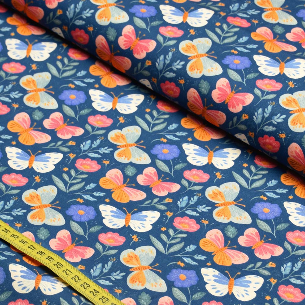 Tecido Tricoline Borboletas Azul (0,50x1,50)
