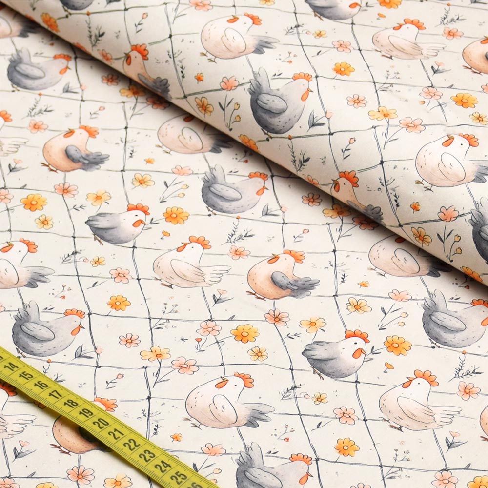 Tecido Tricoline Cocoricó : Galinhas no Cercado (0,50x1,50)