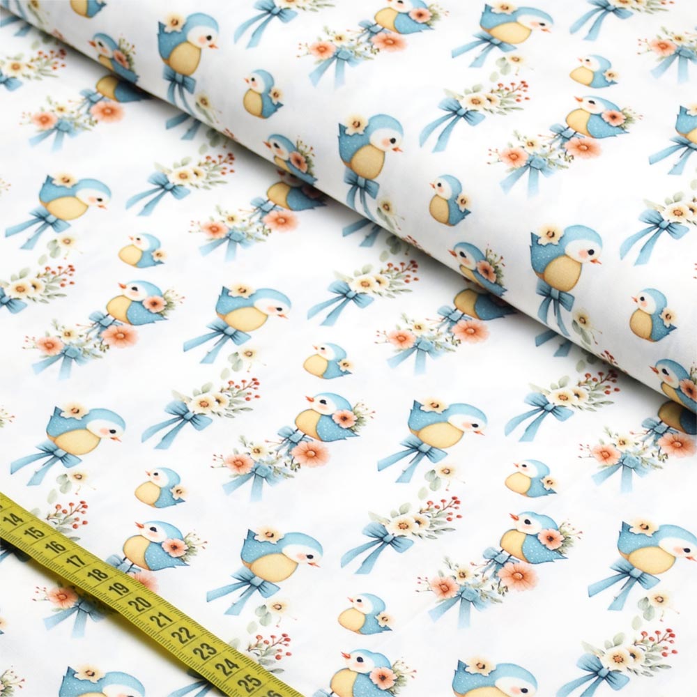 Tecido Tricoline Passarinho Azul : Passarinhos com Laços (0,50x1,50)