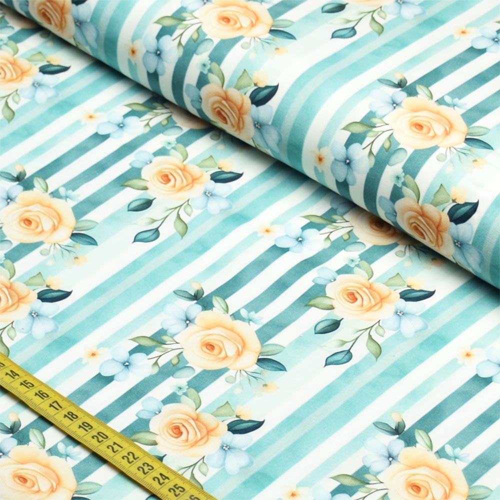 Tecido Tricoline Safari : Rosas e Listras (0,50x1,50)