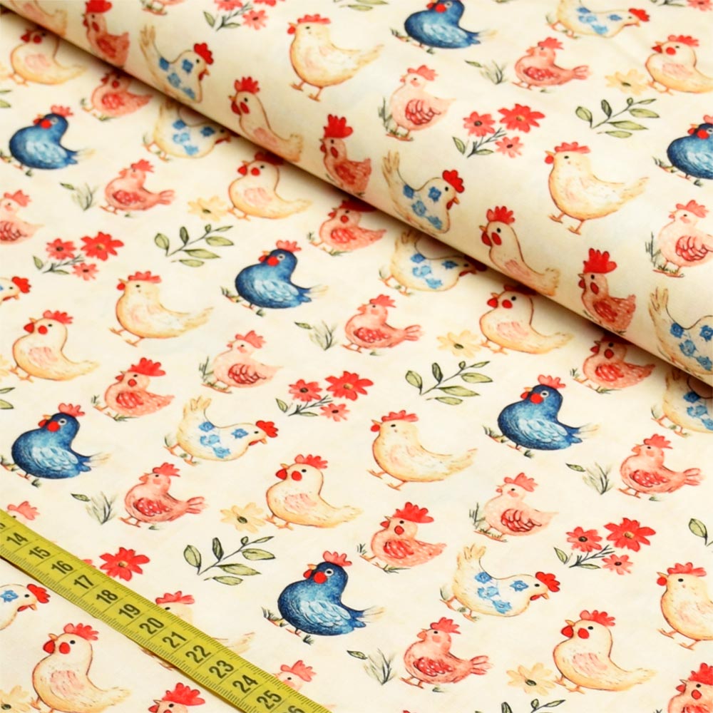 Tecido Tricoline Vida no Campo : Galinhas (0,50x1,50)