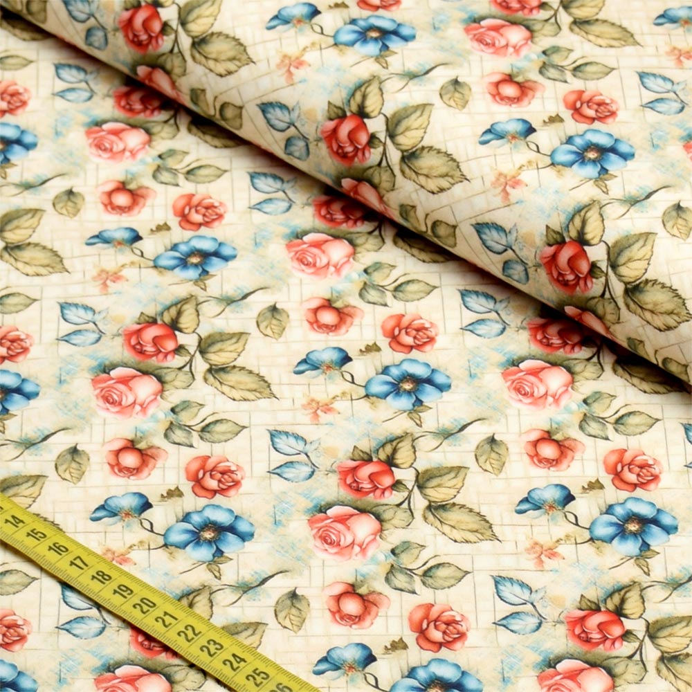 Tecido Tricoline Vida no Campo : Rosas (0,50x1,50
