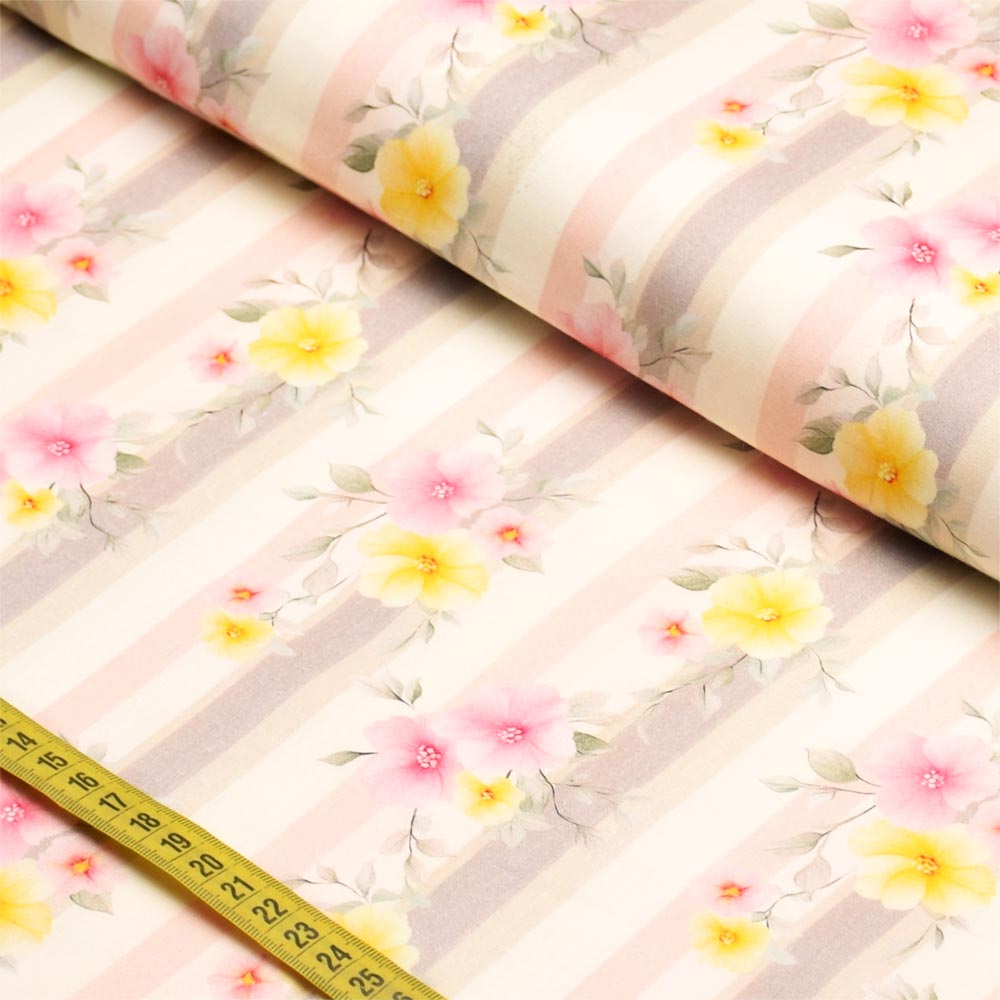 Tecido Tricoline Yellow Spring : Flores Listradas (0,50x1,50)