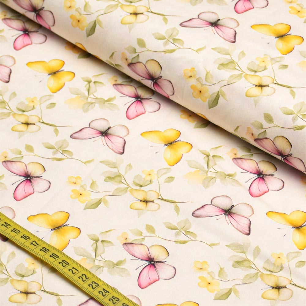 Tecido Tricoline Yellow Spring : Borboletas (0,50x1,50)